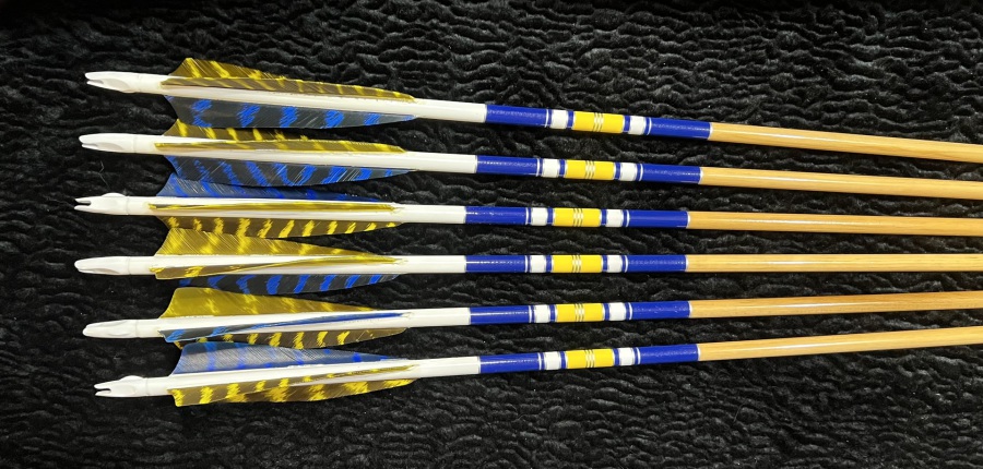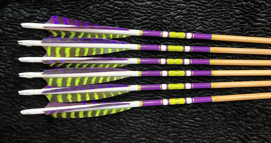 Dyed Natural barred Purple and dyed Natural barred Yellow